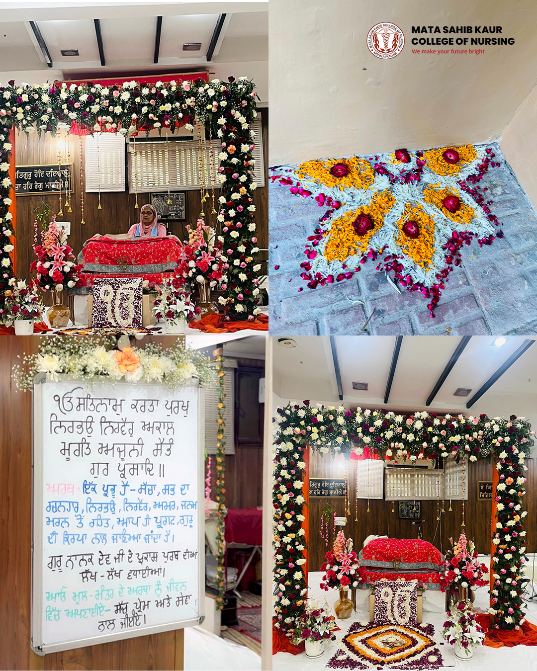Mata Sahib Kaur College of Nursing celebrated the 556th Prakash Purab of Sri Guru Nanak Dev Ji on 5th November with respect and devotion.